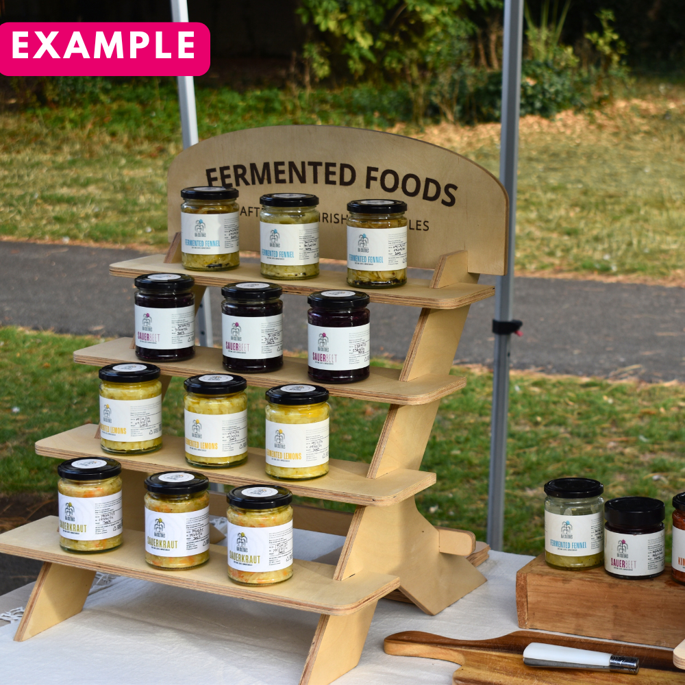The Falcon 4-Shelf Wooden Product Stand, with its 50 cm width and four adjustable 12 cm deep shelves, gives you the space to present a full product range in an organized, eye-catching way. Crafted from 12 mm furniture-grade birch plywood, it’s durable, rainproof, and built to survive busy market days.